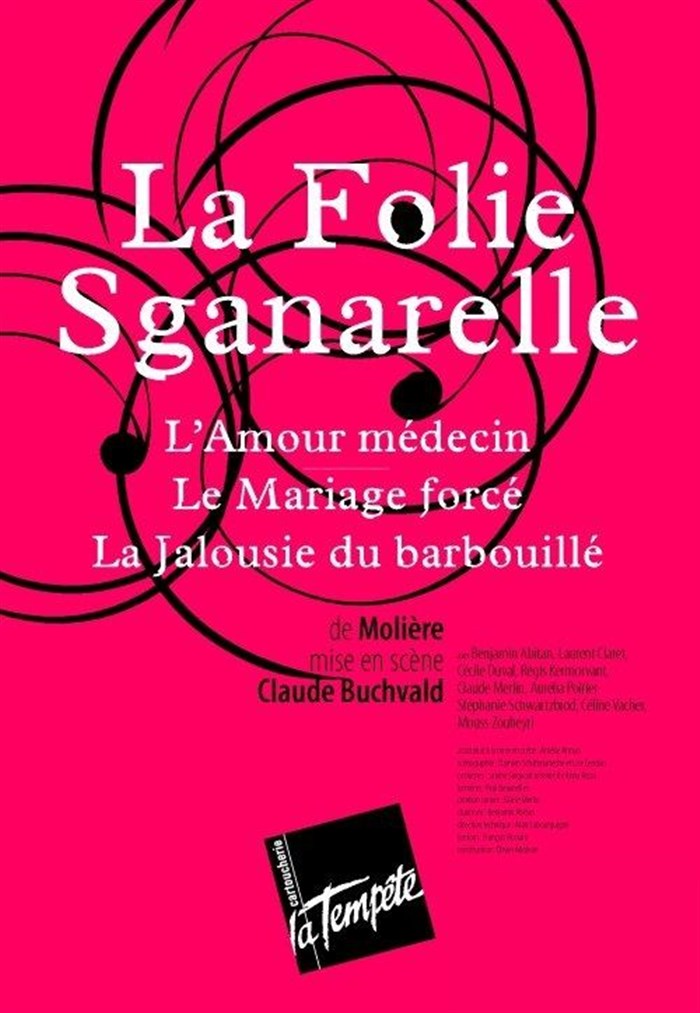 Sganarelle ne veut pas marier sa fille, puis Sganarelle ne veut plus se marier, et enfin Sganarelle marié. Tour à tour veuf et père berné, fiancé bafoué, époux trompé, il est celui sur qui les malheurs pleuvent : si tout lui est bon pour parvenir à ses fins, rien ne l'épargne en retour. Là est sa folie : il manie aveuglément le bâton qui va le rouer de coups et il subit impuissant le déchaînement des événements. La Folie Sganarelle est composée de trois farces de Molière qui se répondent et s'enchaînent pour former un triptyque au tempo frénétique.