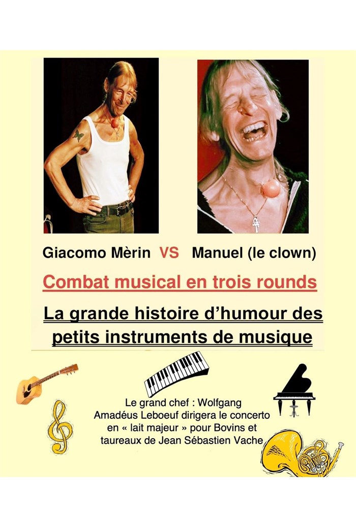 Un combat musical humoristique entre un clown et son alter ego. Piano, clarinette, flûte, guitare et un tas d'instruments insolites.