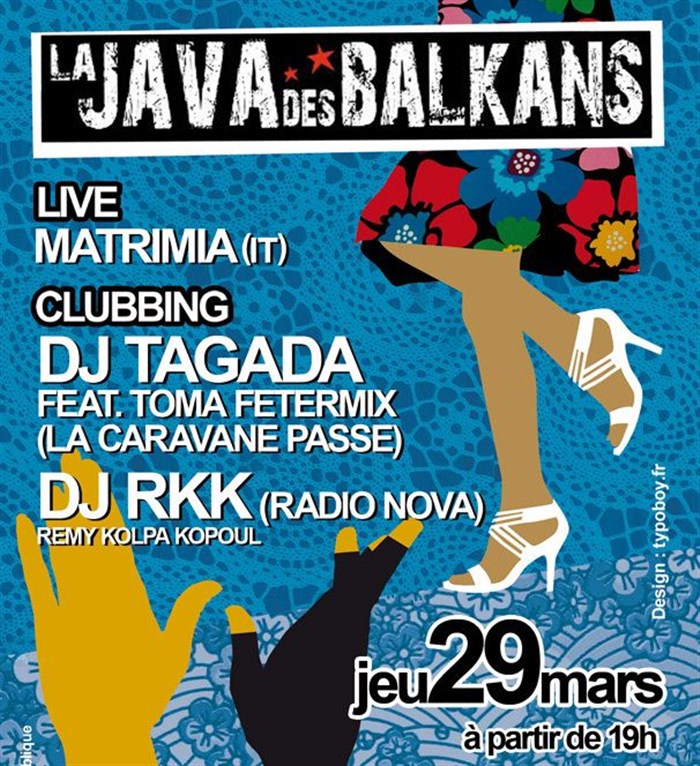 L’événement La Java des Balkans avec Matrimia, Dj Tagada & Toma Fetermix et Dj Rkk de type Musique du monde, organisé ici :