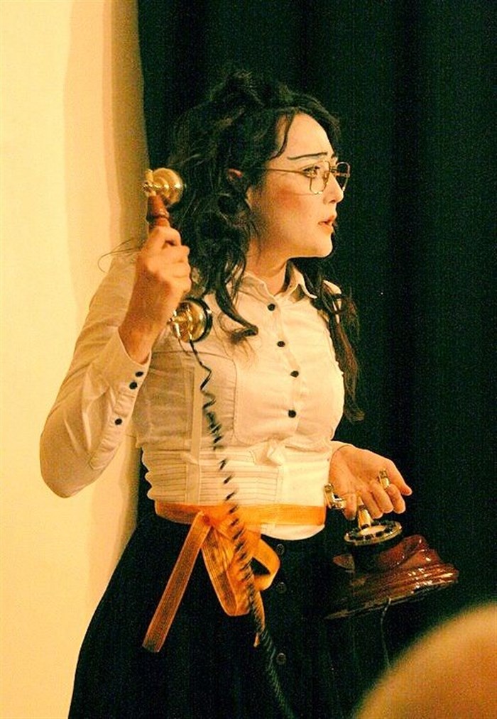 la leçon peut commencer. Accompagnée du public installé sur les bancs de l'école, une jeune fille expérimente avec enthousiasme les savantes théories d'avant-garde de son professeur durant un cours "très particulier ".