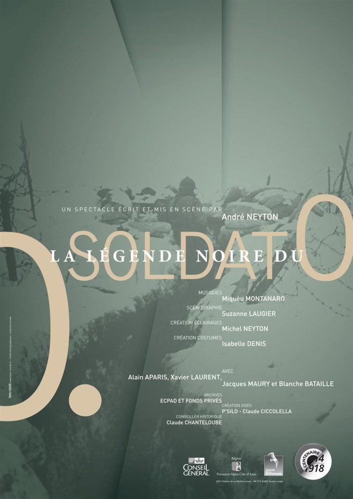 S'en suivirent contre les " Midis ", insultes, stigmatisations, refus de soins aux blessés et exécutions pour l'exemple. " La légende noire du Soldat O " évoque à travers le cas du soldat Auguste Odde de Six- Fours, victime expiatoire d'une volonté de trouver des boucs émissaires, ce drame dans le drame. Sur un fond de légèreté va-t-en-guerre entretenue par une Madelon exaltant le courage des " pioupious ", le soldat O écrit entre deux obus. Une pièce inspirée de faits réels, du vécu de soldats provençaux, de l'appel à la mémoire populaire et d'écrits de grands écrivains français du XIXe siècle et du début du XXe.