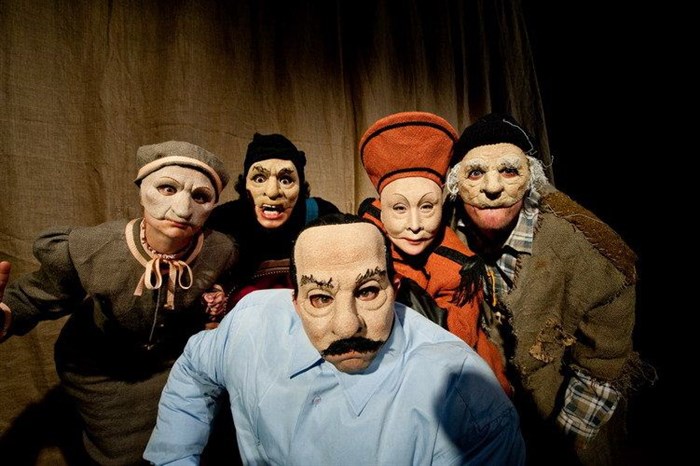 L'utilisation des masques, l'importance donnée au geste, le traitement de l'espace et des objets permettent de créer un univers métaphorique. L'horrible est sublimé, le monstrueux fait rire et le rire soulage nos peurs. Mises en abîme, distanciation, choralité: le spectacle se fait satire sociale et conte fantastique.