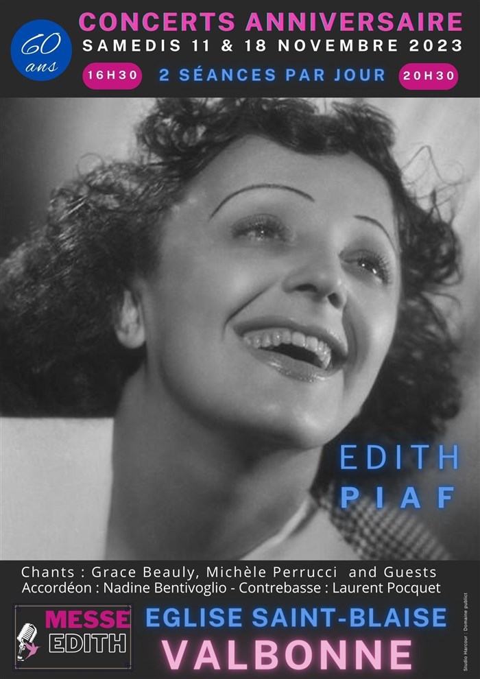 L’événement La messe Edith : Concert anniversaire 60 ans hommage à Edith Piaf | Valbonne de type Hommages, organisé ici :