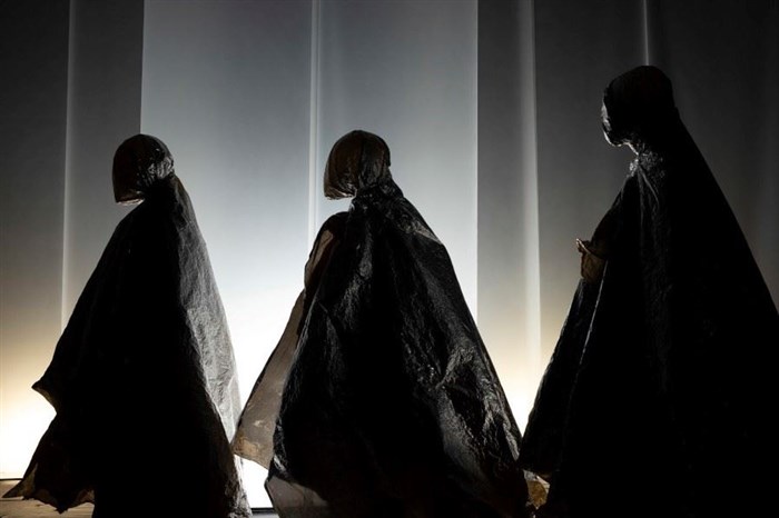 Dissimulés sous des couvertures de survie, les trois interprètes tantôt en lévitation, tantôt accrochés au sol ou encore dans un étrange entre-deux, modèlent les formes de la vie.