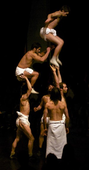 Six acrobates défient les lois de la gravitation.