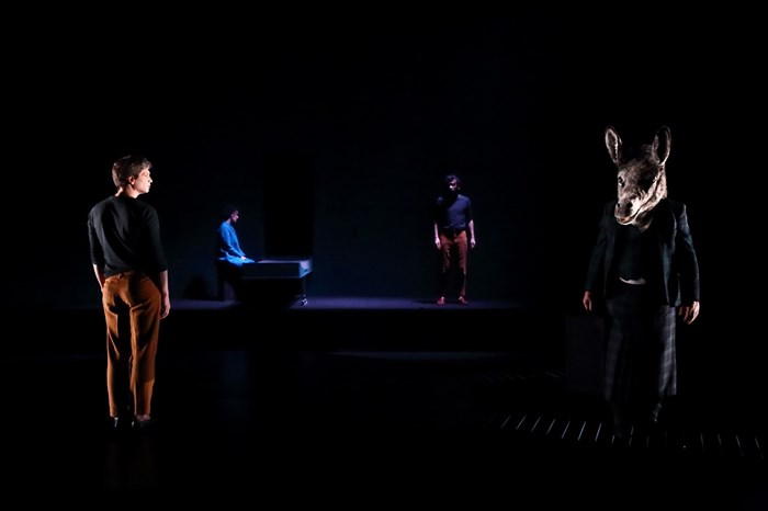 Dans ce spectacle en clair-obscur pour cinq comédiens, la vidéo, la lumière et la musique du pianiste Roberto Negro et des frères Ceccaldi nous guident dans des paysages oniriques.