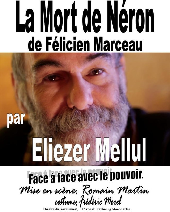 Eliezer Mellul est un très bon acteur, ce qui est toujours utile, encore plus dans un monologue ! Son jeu est souvent efféminé, il est à la fois faible et monstrueux, orgueilleux dans la démesure, avec une bonne dose d'inconscience, l'ivresse des sommets sans bornes. Un vrai Néron, semble t-il...
