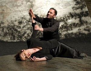 Le spectacle, qui s'ouvre sur la mort de Tréplev, donc sur la fin de la pièce, propose par un effet de montage la même figure de boucle temporelle qui fait ensuite se dérouler le texte de Tchekhov comme un retour en arrière.
