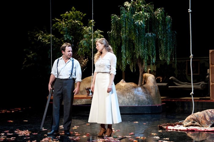 Fluide et clair, le texte expose.. les tourments des personnages dans le décor intimiste et astucieux de Sophie Perez et sur les musiques romantiques du compositeur anglais Edward Elgar. Pendant deux heures trente, on est émus et enchantés par ce "quintal d'amour" que voulait transmettre Tchekhov.