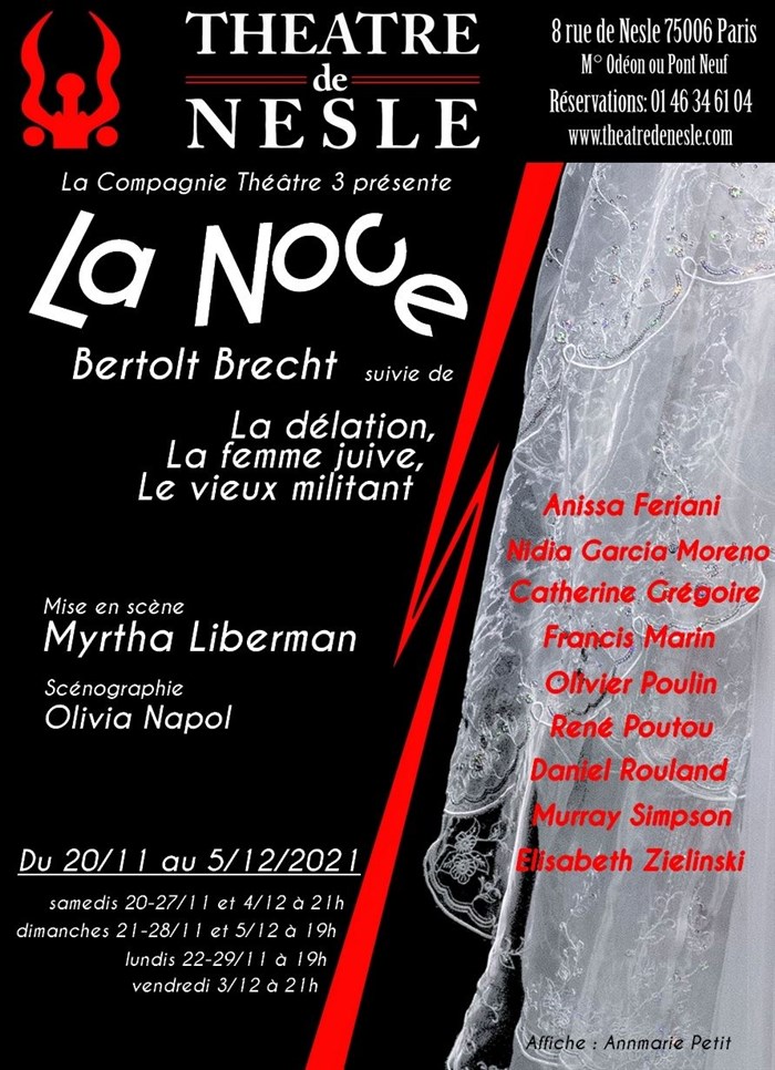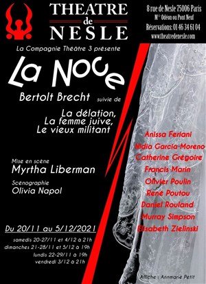 Nous avons adoré la mise en scène très inspirée, les répliques du jeune Brecht hilarantes, l'engagement des acteurs ( mention spéciale pour Anissa Feriani). On ne s'ennuie pas une seconde. L'ajout d'autres textes de Brecht en deuxième partie donne une profondeur supplémentaire au propos de La Noce. Bravo. Je recommande