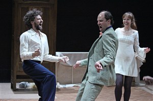 On jette l'emballage, on abîme le décor, on vire le costume, les mots fusent et on finit par faire l'amour, presque nus, lavés d'une certaine souillure de cette noce passée. Transposition de ce que veut dire un espace qui s'écroule, qui est envahi. Tout est spectacle. Nous trichons.