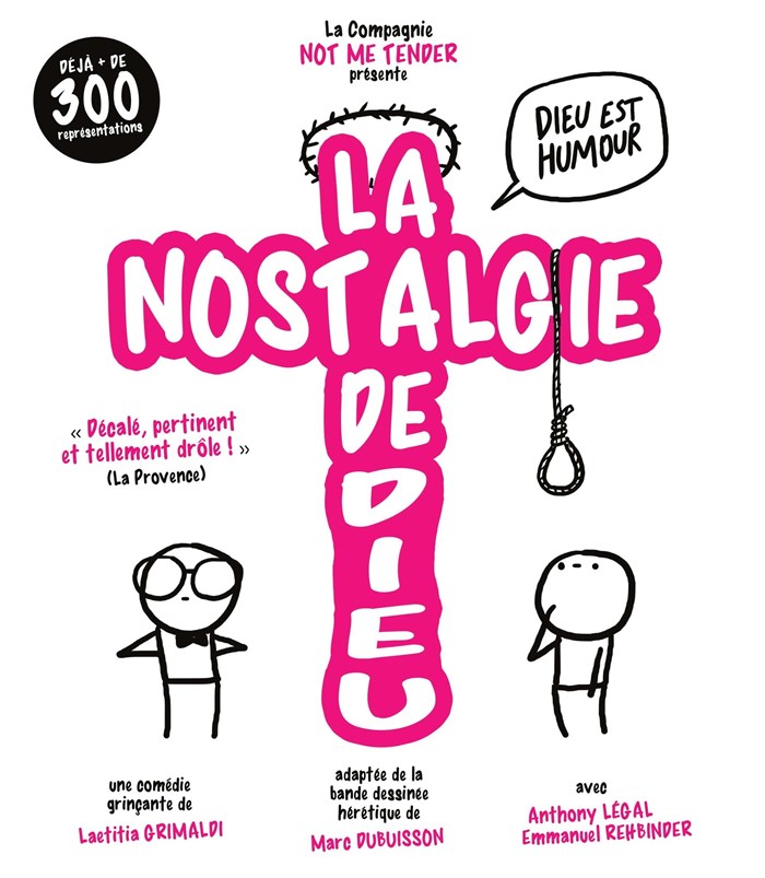 Vous aurez donc le plaisir de retrouver les textes mordants de " la nostalgie de Dieu " , ainsi que du " Complexe de Dieu ", sur les planches.