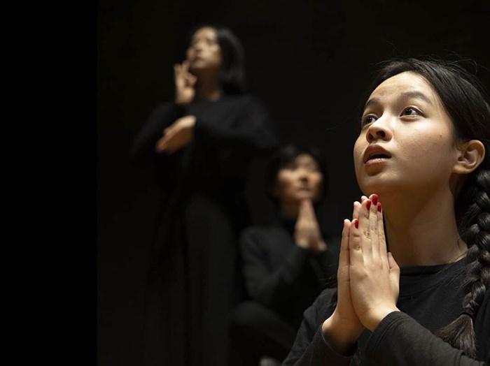 Avant la légende, avant l'armure, il y eut une nuit. Une nuit où Mulan n'était encore qu'une jeune fille qui brûlait du désir de partir. Trois corps sur scène. Trois voix pour incarner la terre, les dieux, et cette fille qui osa dire non. Pas d'épées, pas de drapeaux — juste une table, trois chaises, et la sueur des acteur·rices qui font naître un monde sous vos yeux.