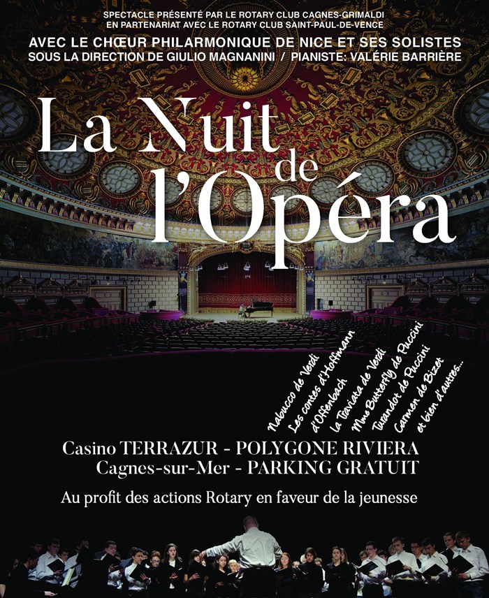 En cette fin d'année, le Rotary Club Cagnes Grimaldi en partenariat avec le Rotary Club de St Paul de Vence, organisent une soirée consacrée aux grands airs d'opéra avec le Choeur Philarmonique de Nice et ses solistes sous la baguette de Giulio Maganini.