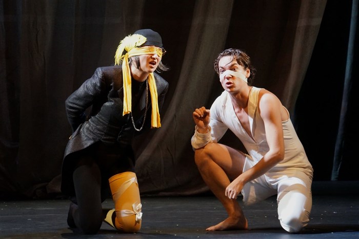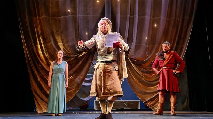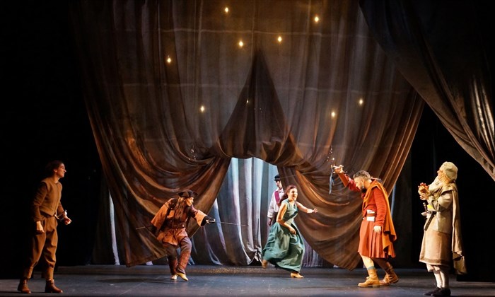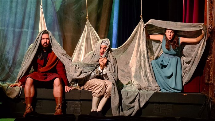 TTT Dans un décor de tentures et de voiles, les six comédiens virevoltent et changent allègrement de personnages, passant d'un rôle burlesque à celui d'un amoureux transi. Une mise en scène enlevée et réjouissante, qui a de quoi séduire un public familial.