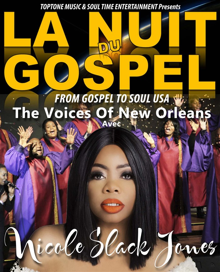 Ayant partagé la scène avec une foultitude de stars telles que de Beyoncé, Stevie Wonder, Zucchero, Earth Wind & Fire Experience, Percy Sledge, Aloe Blacc... Nicole SlackJones tient désormais le haut de l'affiche depuis son premier album en 2008 récoltant depuis trois Awards. " Je souhaite faire une musique qui touche l'âme des gens et les rendre heureux " explique celle qui a rayonné dans tous les plus prestigieux festivals du monde comme pour l'UNESCO, où son mélange de soul, gospel et R&B favorisant toujours les ambiances " churchy ", sonne comme une explosion à la fois de ferveur spirituelle, de swing groovy et de passion.