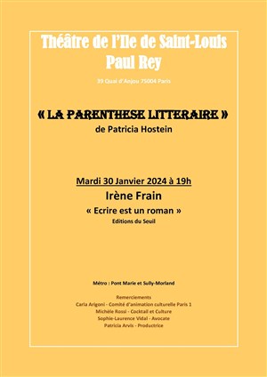 Toutes les critiques et avis spectateurs et presse sur La Parenthèse Littéraire de Patricia Hostein : Irène Frain