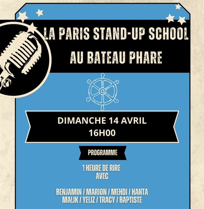 7 humoristes sélectionnés parmi les meilleurs élèves de la Paris Stand-Up School se succèdent afin de vous faire découvrir leurs univers le temps d'un sketch. Une soirée stand-up présentée par un MC sympathique sur un bateau !