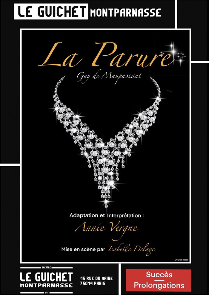 Eternelle confrontation entre l'être et le paraître, ceux qui réussissent et ceux qui ne sont rien. Annie Vergne a adapté cette nouvelle de Maupassant et incarne cette femme qui des années plus tard, après mille épreuves, se souvient. L'incarnation est parfaite ! Je vous invite à aller l'applaudir.