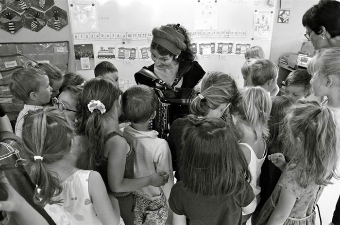 De l'accordéon au ukulélé, du chant au récit, elle mêle les mots aux rythmes et aux mélodies.