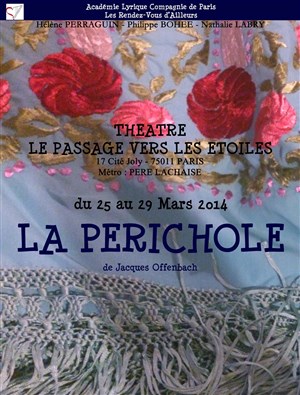 que j aime ce sympathique théâtre"le passage vers les étoiles",niché dans une impasse tranquille et arborée...j en deviens lyrique et c est tout à propos car après l excellent "opéra bulles",c est le spectacle la périchole"dont je vais parler.Les costumes sont magnifiques,la mise en scène parfaitement vue, la chef dorchestre et la pianiste toutes deux excellentes...Quant à l atmosphère et l ambiance du lieu,nous sommes entre"amis",tout comme si l on assistait à une générale,ambiance authentique.La compagnie vue ce jour nous a présenté un spectacle plein de gaité et,malgré quelques petites faiblesses(vocalement parlant) de notre sympathique Périchole(la chan teuse lyrique ne devait pas être au mieux de sa forme),Piquillio était excellent,vraiment une voix.Mention également pour l une des trois cousines,au vice roi et à ses deux conseillers.L ensemble fut d un bon niveau et ce fut donc un moment plaisant et joyeux.J aime ce petit théâtre ou je serais, à coup sûr, "often back"!