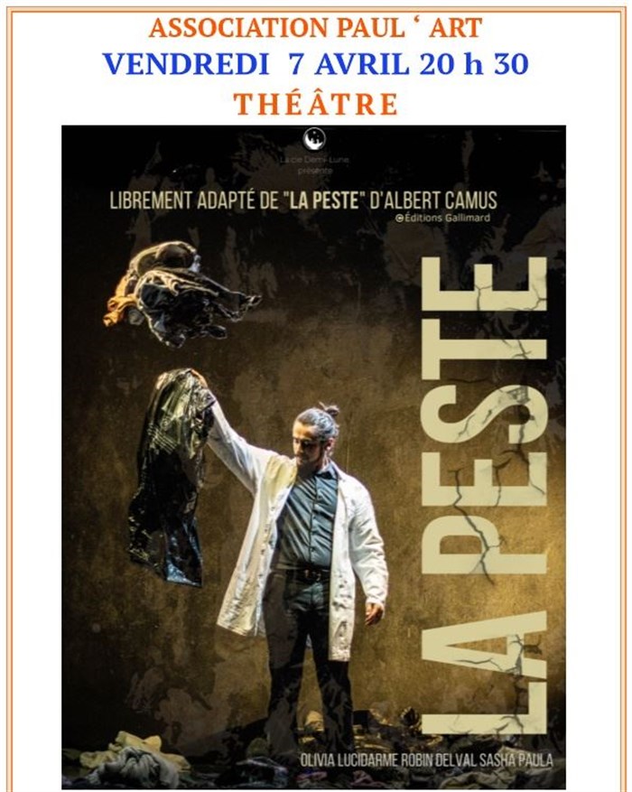 La Cie Demi-Lune va nous interpréter La peste d'Albert Camus, publié en juin 1947, qui a obtenu le prix Nobel de littérature en 1957.