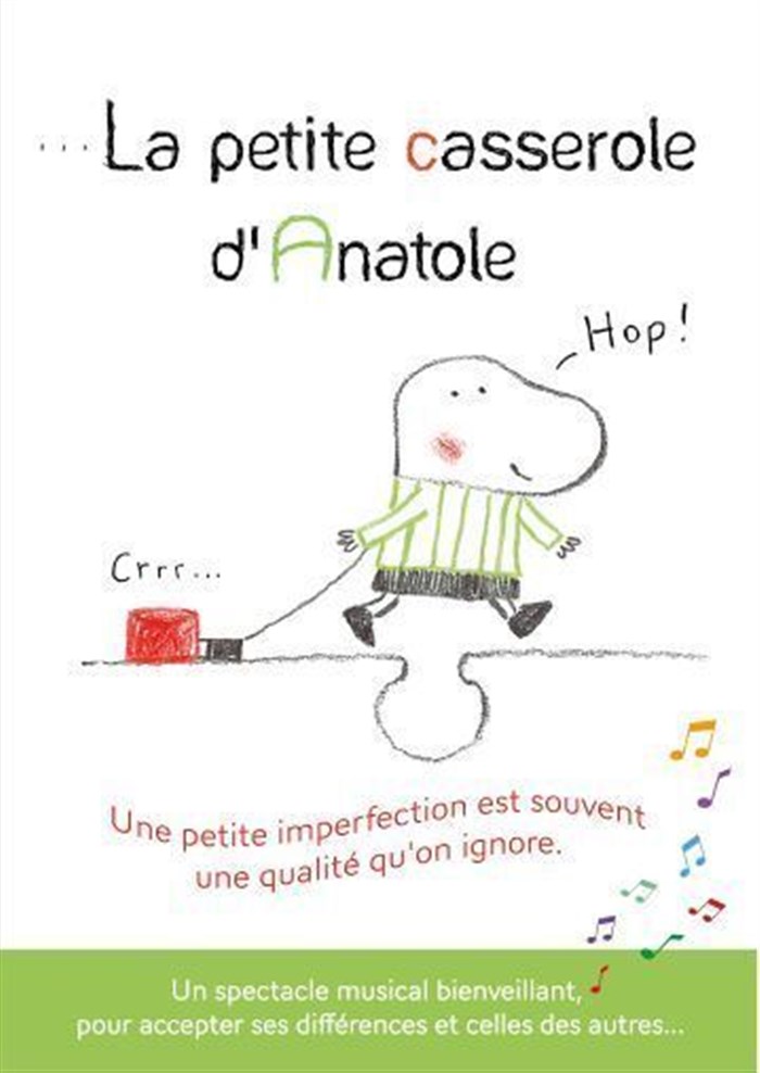 Un spectacle musical positif, émouvant et joyeux, où l'on rit, on chante, pour accepter davantage nos propres différences et celles des autres... D'après l'album jeunesse best-seller d'Isabelle Carrier La Petite Casserole d'Anatole, éditions Formulette – Bilboquet.