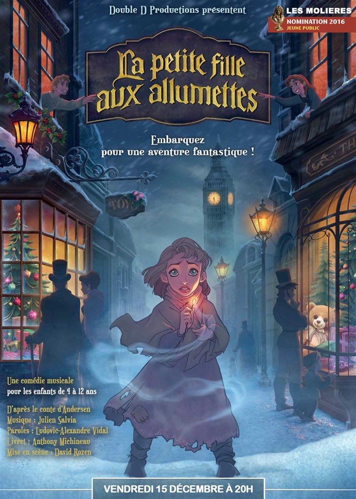 Le Studio David Rozen présente l'édition school de la célèbre comédie musicale de Double D Productions "La petite fille aux allumettes", nommée aux Molières pour le meilleur spectacle jeune public ! Une représentation unique à ne pas manquer !