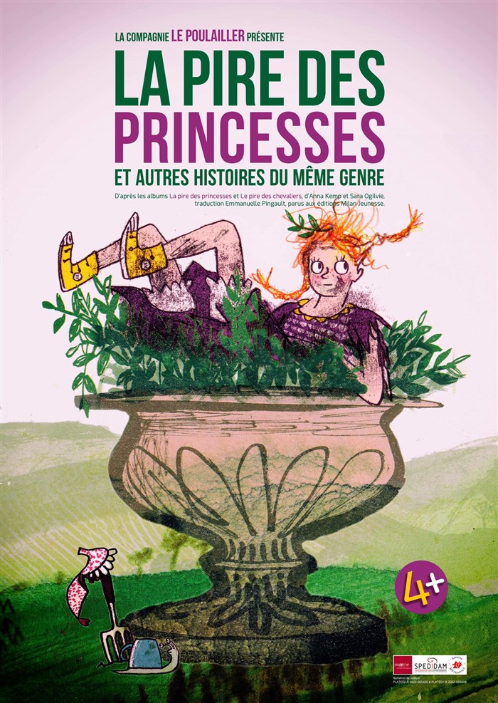 Une princesse qui n'a pas la langue dans sa poche, un chevalier crétin, un dragon qui tient salon à l'heure du thé, et un crapaud qui se prend pour César... C'est par ce cocktail détonnant que les stéréotypes véhiculés par les contes de fées volent en éclats pour notre plus grand plaisir, en théâtre et en chansons. Un spectacle poétique et malicieux à voir en famille dès 4 ans, d'après les albums La Pire des Princesses et Le Pire des Chevaliers d'Anna Kemp et Sara Ogilvie parus aux éditions Milan.
