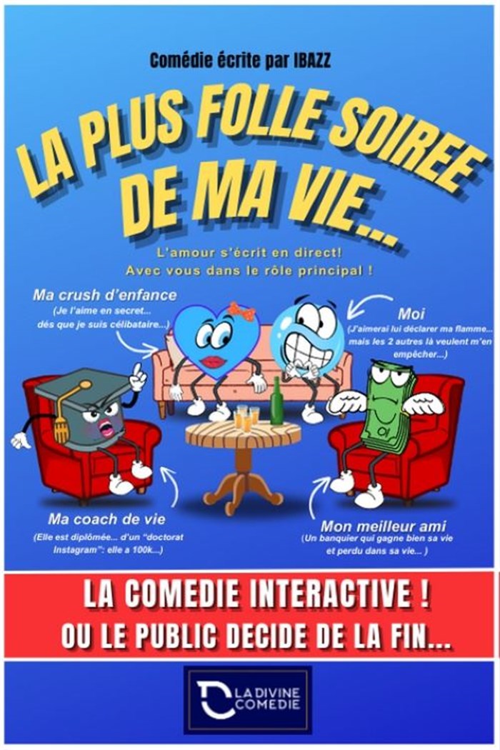Préparez-vous pour une expérience théâtrale novatrice avec "La plus folle soirée de ma vie" ! Jon Snow un garçon romantique déterminé à déclarer sa flamme à Daenerys la fille de ses rêves, Cersei une coach de vie déjantée et Tyrion un meilleur ami plein de doutes et de conseils douteux – tous réunis ou pas... sur scène pour une comédie romantique interactive inédite !