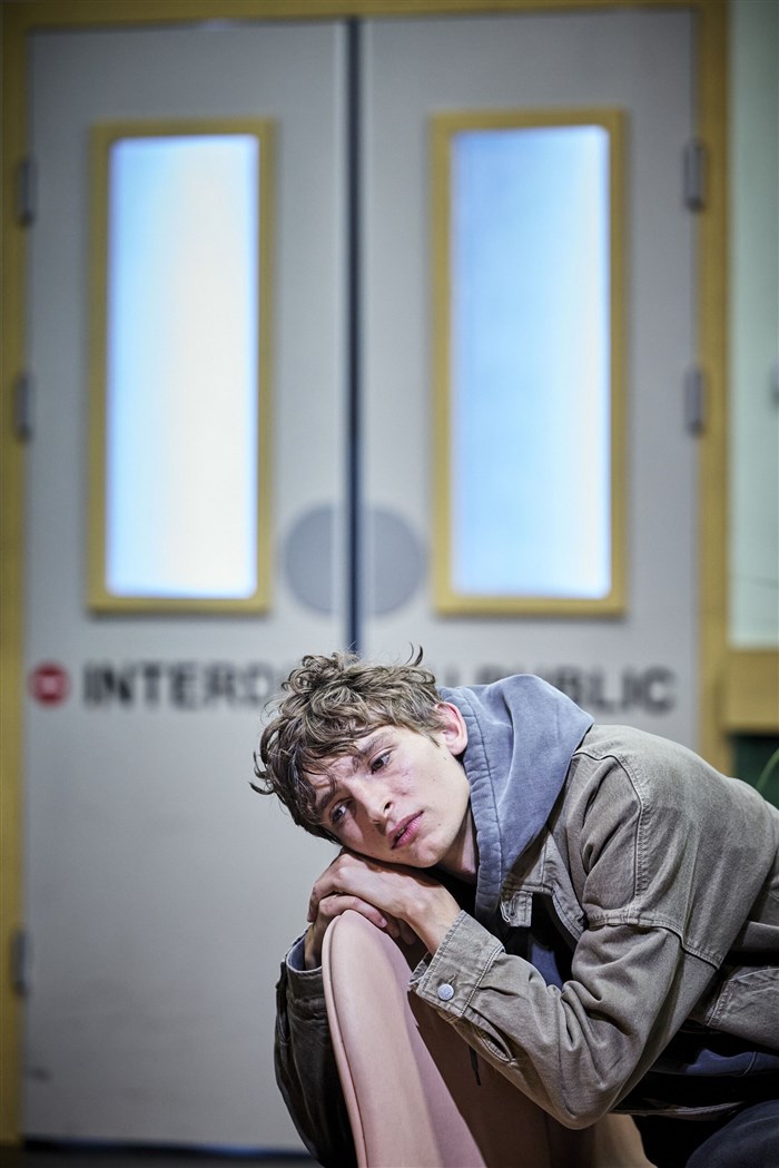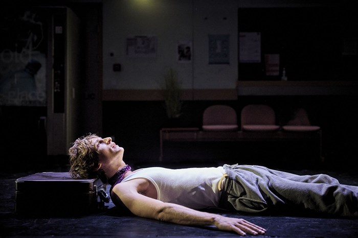 Dans le miroir d'une salle d'attente d'hôpital, face à son fils, incarné par Vassili Schneider, le père, interprété par Yann Pradal réapparaît.