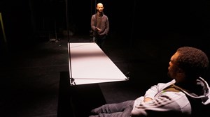Le plateau de théâtre devient le lieu de sa rencontre avec un comédien, une danseuse et une violoncelliste.