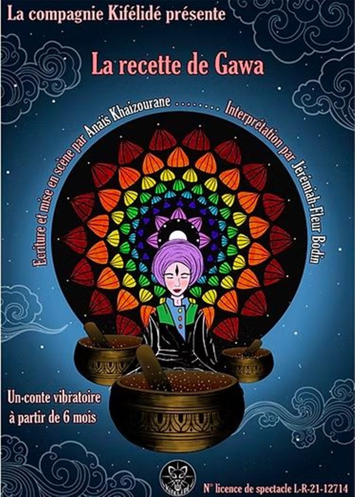S'inspirant de philosophies orientales considérant l'être humain de façon holistique, "La recette de Gawa", propose un moment d'écoute et de connexion à son monde intérieur. Grâce aux vibrations des bols tibétains, aux chansons, et aux images corporelles inspirées du yoga, le spectacle invite petits et grands à vivre un moment de douceur et d'amour avec soi-même.