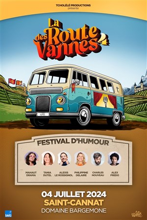 Chaque soir, La Route des Vannes s'installera dans un domaine différent pour proposer un spectacle de plus d'une heure, mené par des humoristes incontournables de la scène stand up.