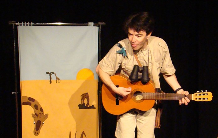 Ce spectacle très jeune public a pour but de faire découvrir aux plus jeunes les animaux de la savane ainsi que certains instruments de musique qu'ils pourront essayer à la fin du spectacle (tam tam, bâton de pluie).