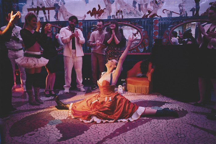 Durant deux heures, vous assistez à un spectacle immersif porté par 3 artistes. Par le chant, l'effeuillage burlesque et le jeu, elles transportent le public hors du temps dans une jubilation contagieuse !