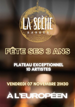 Découvre La Scène Barbès : 3 ans !, qui fait partie de notre sélection d’événements de type Plateau d'humoristes et qui se tient ici : L'Européen -
