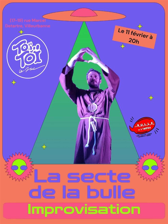 Format format long d'improvisation joué par 4 comédiens et un Maître de Cérémonie qui joue le rôle du gourou et fait passer des "tests" d'admission aux comédiens pour entrer dans la secte de la Bulle avec la complicité du public.