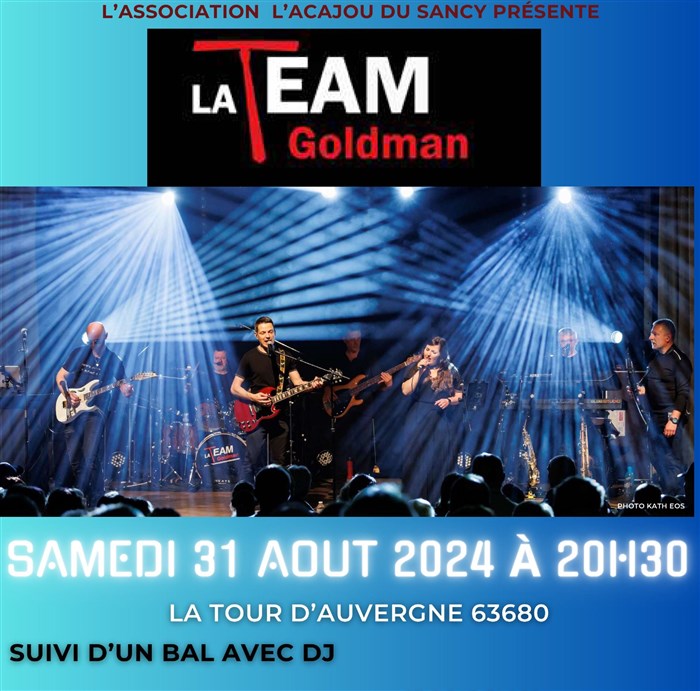 Forts d'une grande expérience des scènes régionales, nationales, et de quelques dates internationales, les musiciens de La Team Goldman sont heureux de présenter ce répertoire des meilleures chansons Live de Jean Jacques Goldman. Le concert sera suivi d'un bal avec DJ.