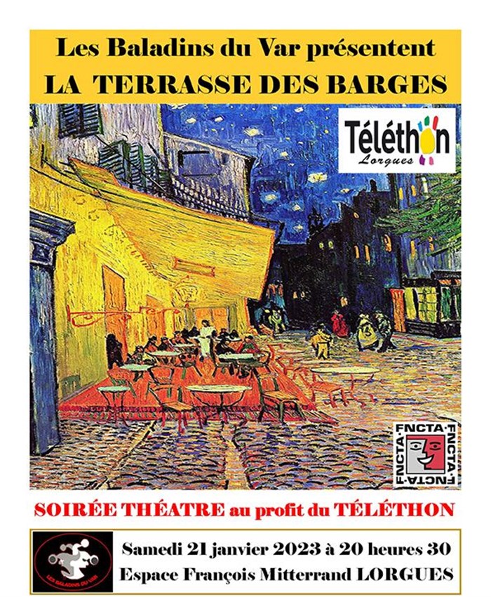 Dans le cadre du Téléthon, la troupe de théâtre "Les Baladins du Var" va jouer, le samedi 21 janvier à 20h30 à l'Espace François Mitterrand, à Lorgues, son nouveau spectacle, "La terrasse des Barges".