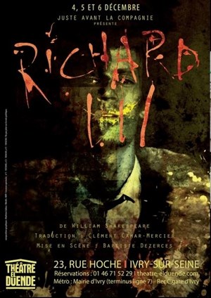 La Compagnie a le plaisir de vous présenter la création de Richard III, de William Shakespeare, dans une nouvelle traduction de Clément Camar-Mercier