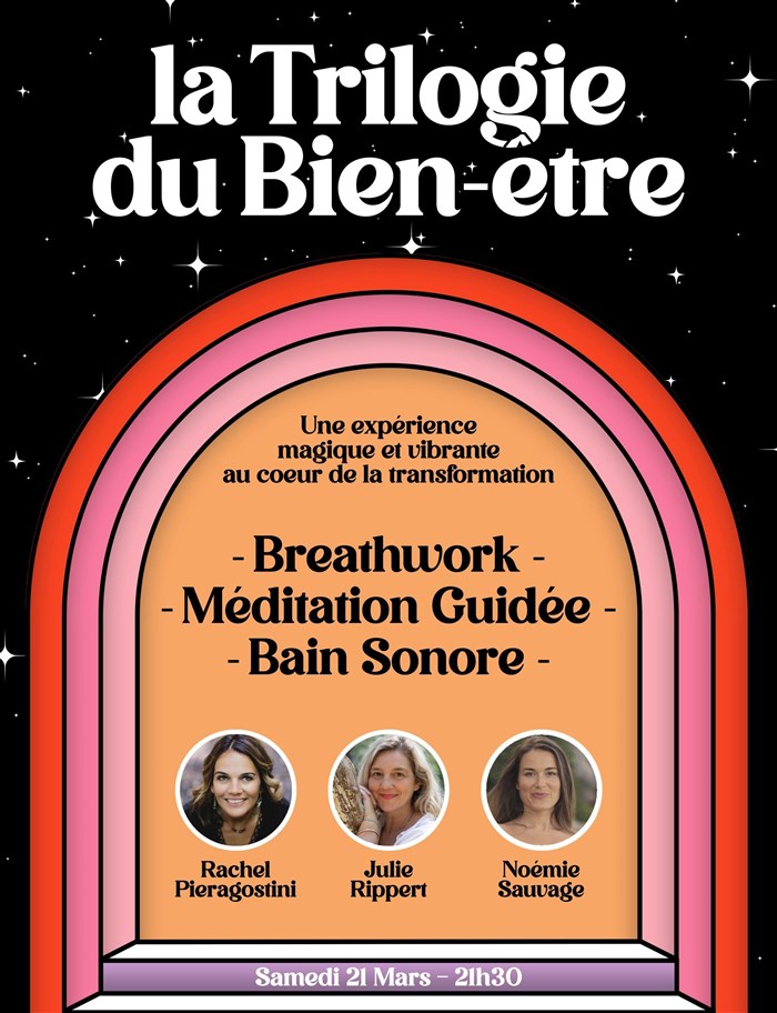 La Trilogie du Bien-Être est une soirée exceptionnelle au coeur d'un théâtre, une expérience immersive dédiée au corps, au souffle et à l'énergie.