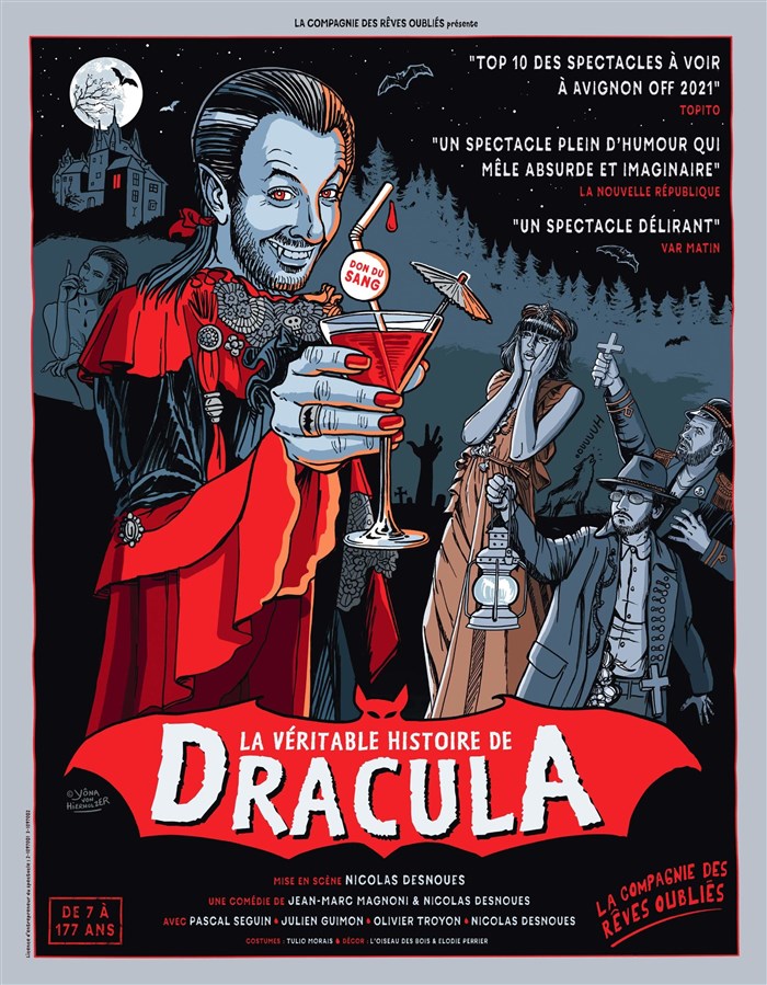 Après trois ans de succès au Festival d'Avignon et une tournée dans toute la France, la comédie déjantée sur le plus célèbre des vampires est de retour à Paris.