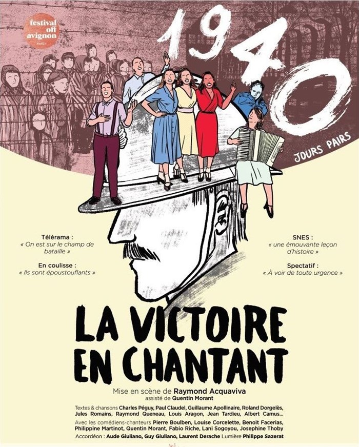 La Victoire en Chantant est un spectacle vraiment original. On ne s'ennuie pas une seule seconde car on voit des tas de tableaux différents, tous très bien joués et superbement bien chantés. Quelles voix ! Bravo ! En résumé : beaucoup de talentS, beaucoup d'énergie, et une mise en scène du tonnerre, en plus des illustres et sublimes textes choisis.