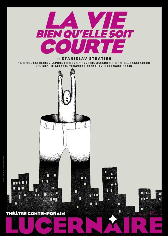 Après "De quoi parlez-vous ?" de Jean Tardieu (au Lucernaire en 2014, la Compagnie C'est-pas-du-jeu présente "La vie bien qu'elle soit courte", une oeuvre du Bulgare Stanislas Stratiev qui, avec une fausse légèreté, dénonce les travers d'une société oppressive et montre les questionnements d'un intellectuel étouffé par son environnement.