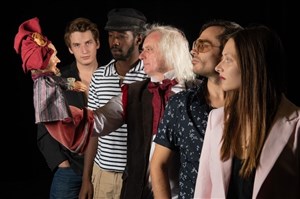 L'histoire se situe dans un atelier de marionnettes en cours de destruction pour cause d'urbanisme. L'action mène le spectateur par-delà le quatrième mur, à entrevoir l'île, là-bas, comme but du voyage. De plus, il paraît que l'une des marionnettes parle, mais nul ne sait laquelle.