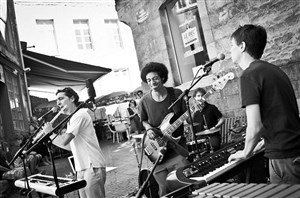 Ce quartet original formé d'un vibraphoniste/claviériste, d'un flûtiste/machiniste/vocaliste, d'un chanteur/bassiste et d'un batteur s'oriente vers un répertoire de compositions inédites.