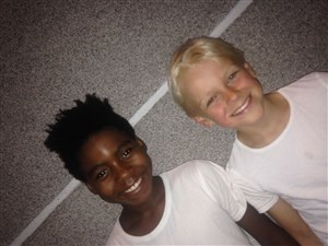 Lalo et Thomas (10 ans) dansent pour l'association Les petites Babouches.