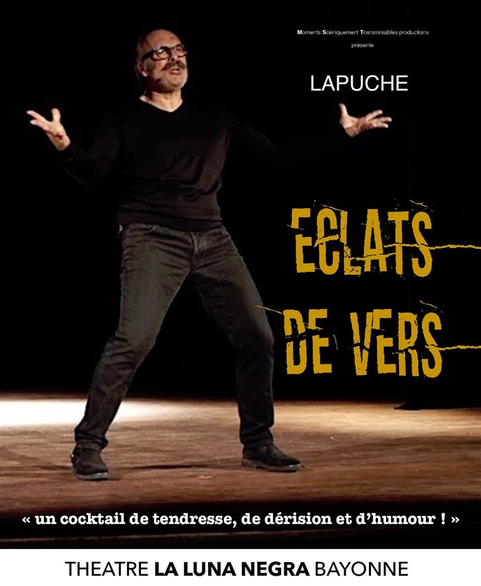Lapuche est un comédien-canaille à l'oeil malicieux et au verbe juste qui se taille un costume sur mesure de ... 12 pieds... et enfile ses alexandrins comme autant de perles impertinentes et poétiques sur quelques vicissitudes du quotidien !