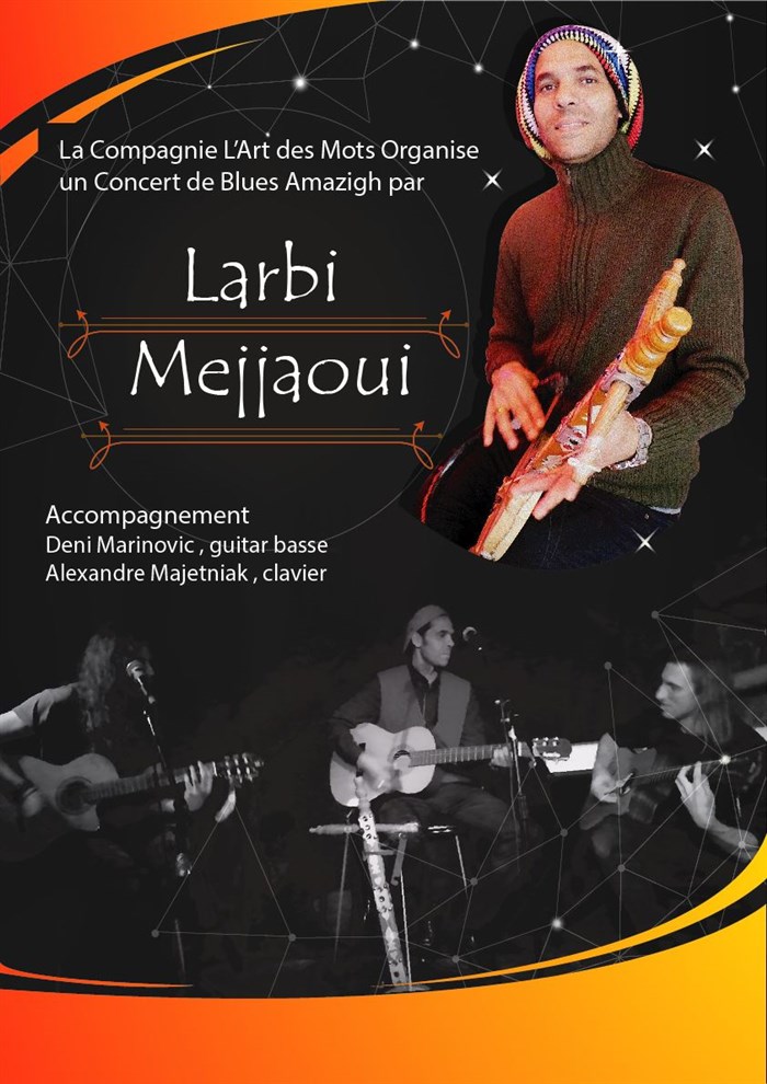 Les blues amazigh revisités par Larbi Mejjaoui, musicien multi-instrumentiste (rebab, guembri,banjo,) accompagné par Deni Marinovic (guitar basse) et Alexandre Majetniak (clavier).